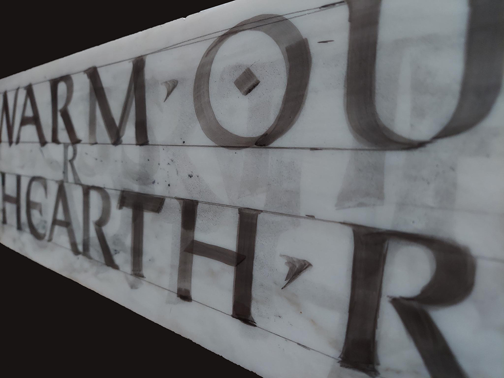 Our letters are drawn or brushed by hand in a manner that befits the chosen scale and materials. Initial sketches are drawn to scale, either at full or reduced size, and finalized layouts are applied to the selected piece of stone. Legibility is the primary concern in lettering work, regardless of size and style.
